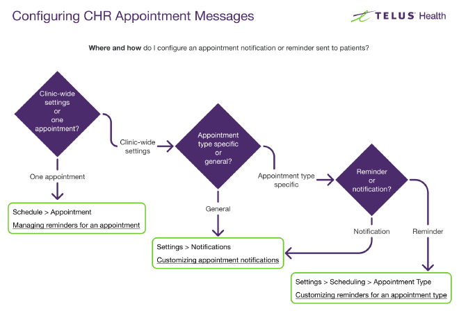 This job aid, titled “Configuring CHR Appointment Messages” was part of a webinar presentation and post-event support material package for TELUS Health.