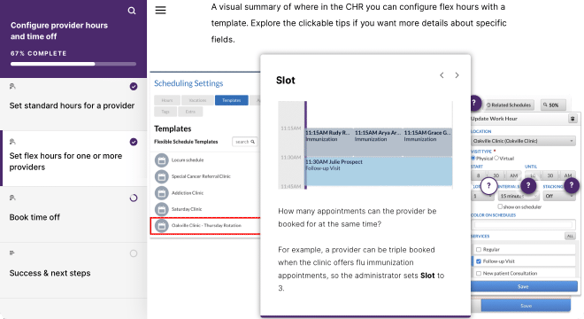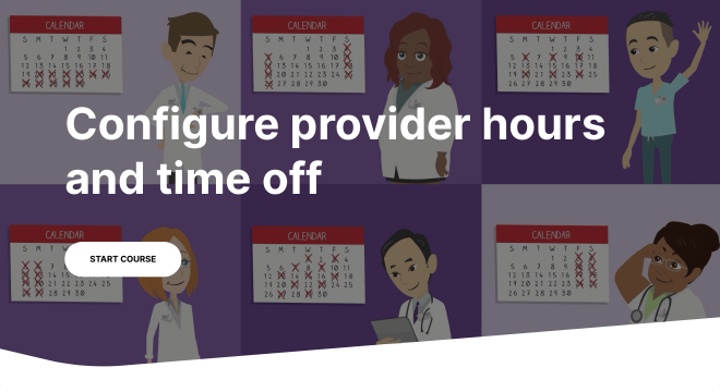 This course, titled “Configure provider hours and time off” was part of a “Configuration for Go-Live” learning path I created for TELUS Health.