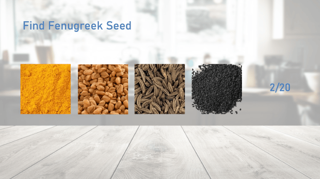 The game randomizes the order of the images and prompts, as well as keeping track of your correct answers. This allows a learner to continue practice matching spices they didn’t recognize at first, without repeating correct answers.