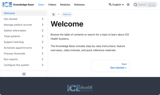 I implemented and lead the migration of the ICE Health Systems knowledge base from a Confluence and Scroll Viewport setup to one built on plain text Markdown files and the Docusaurus static site generator.